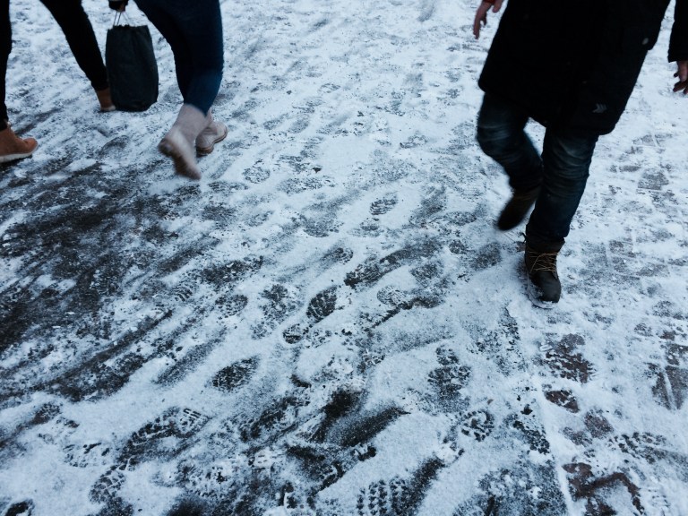 Berlin . Friedrichshain . Bersarinplatz . Schnee