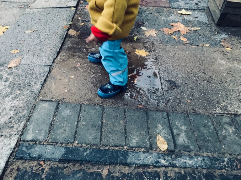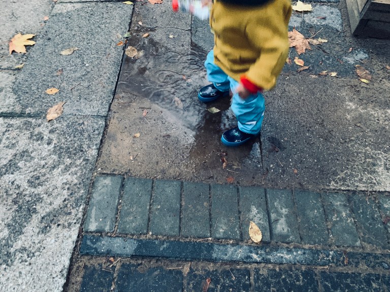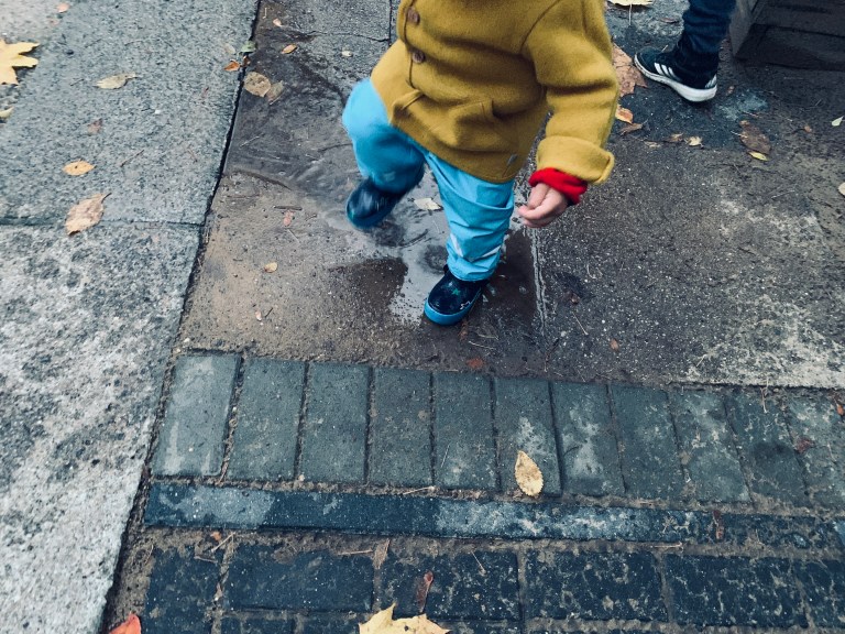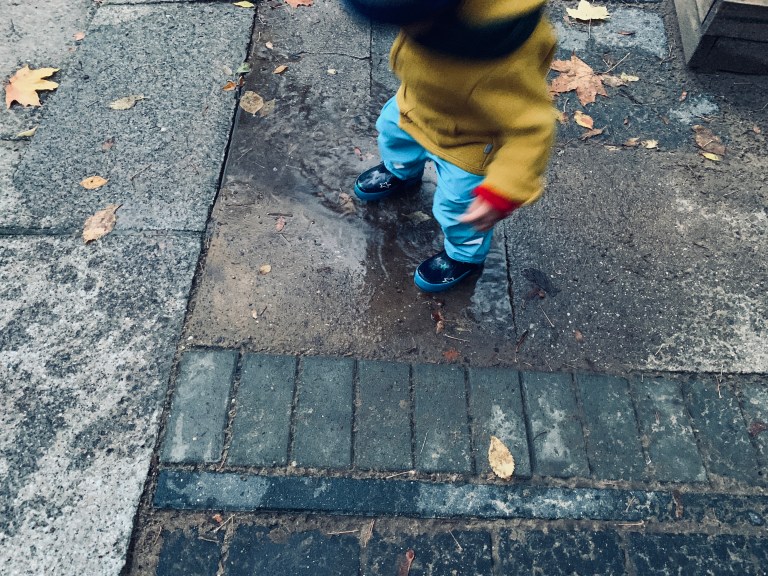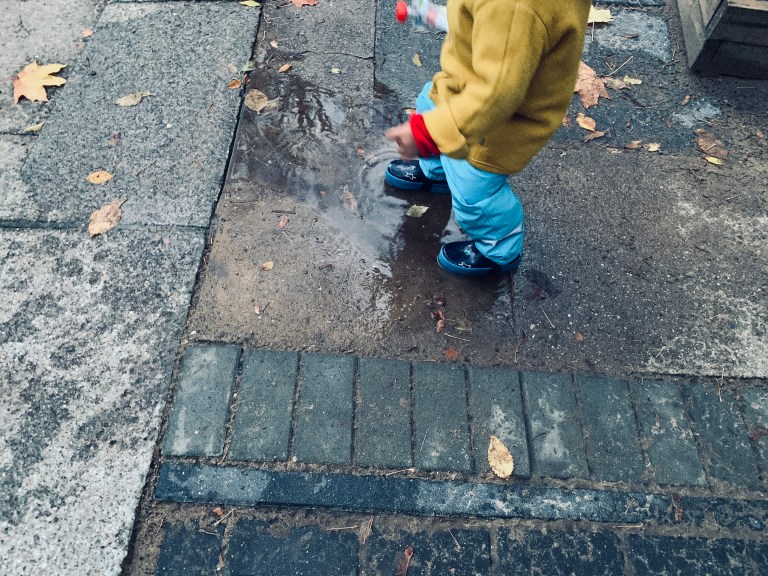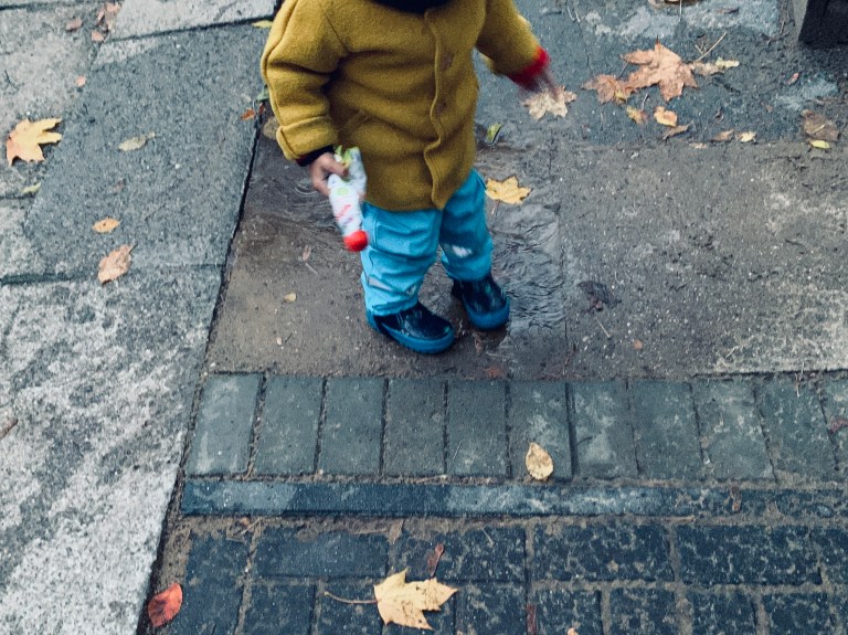 Berlin . Kastanienallee . Hinterhof . Herr Baby . Pfützenspringen